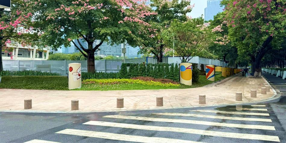 ▲天河体育中心东门过街口全宽式放坡改造后